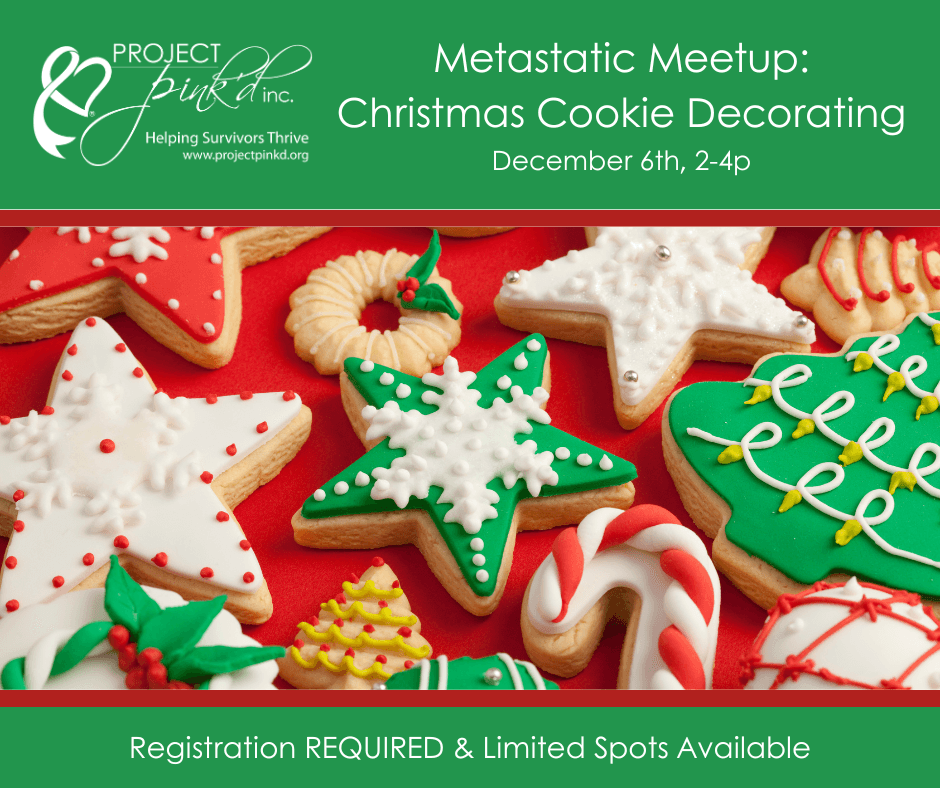 Celebrate the season with a cozy afternoon of connection, creativity, and cheer! Decorate delicious holiday cookies, share some laughs, and enjoy time with others who understand the metastatic journey. All supplies (and plenty of sprinkles!) will be provided. All you need to bring is your holiday spirit!